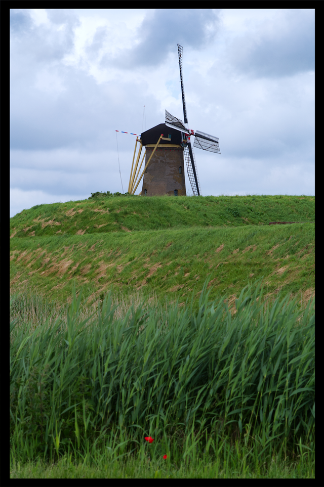 Title EN: Windmill (Portrait). A similar photo in landscape orientation was taken last year. This one was also taken in the town of Hellevoetsluis south of Rotterdam. This is a framed version of the photo. Please contact us to arrange purchase and delivery.